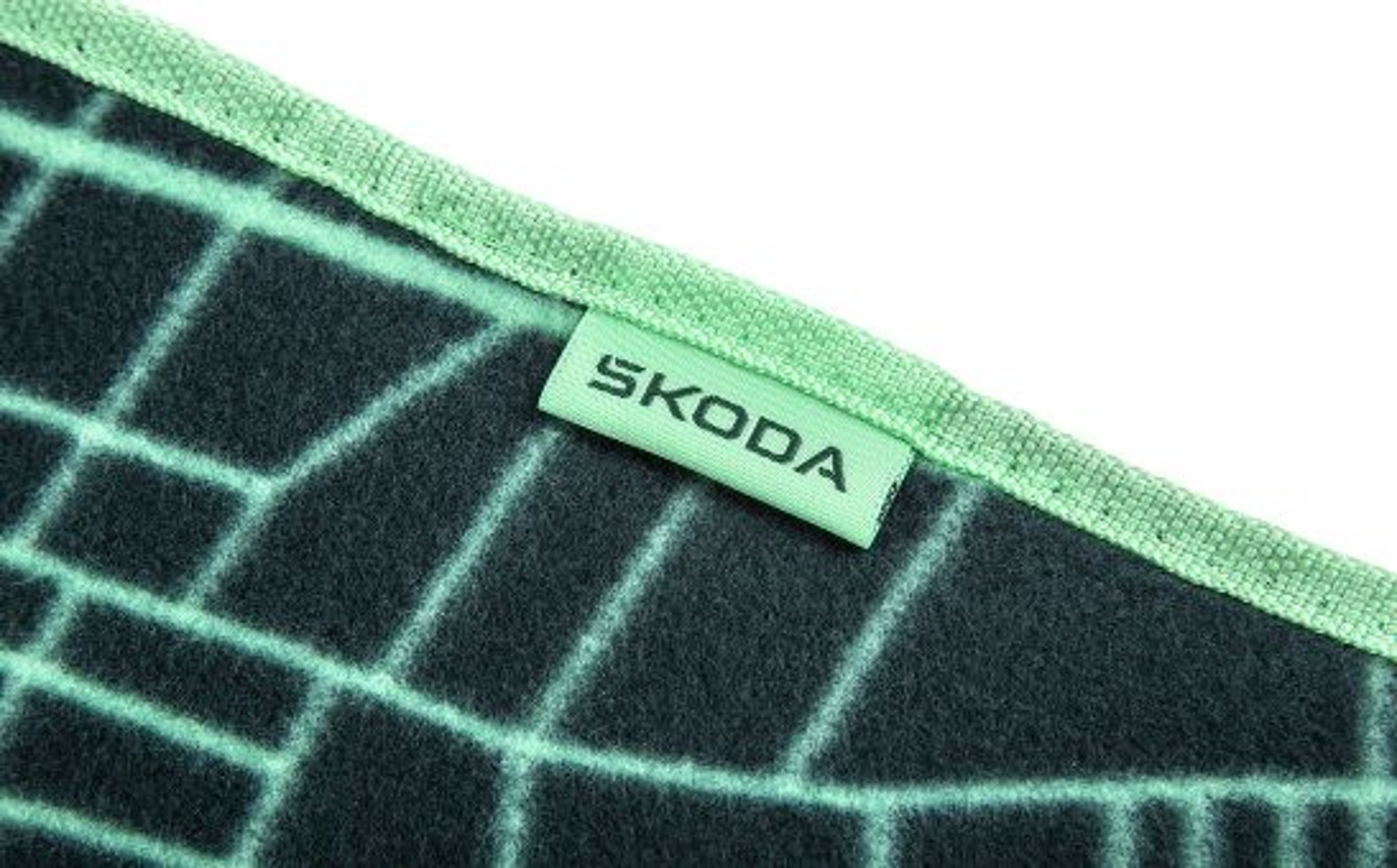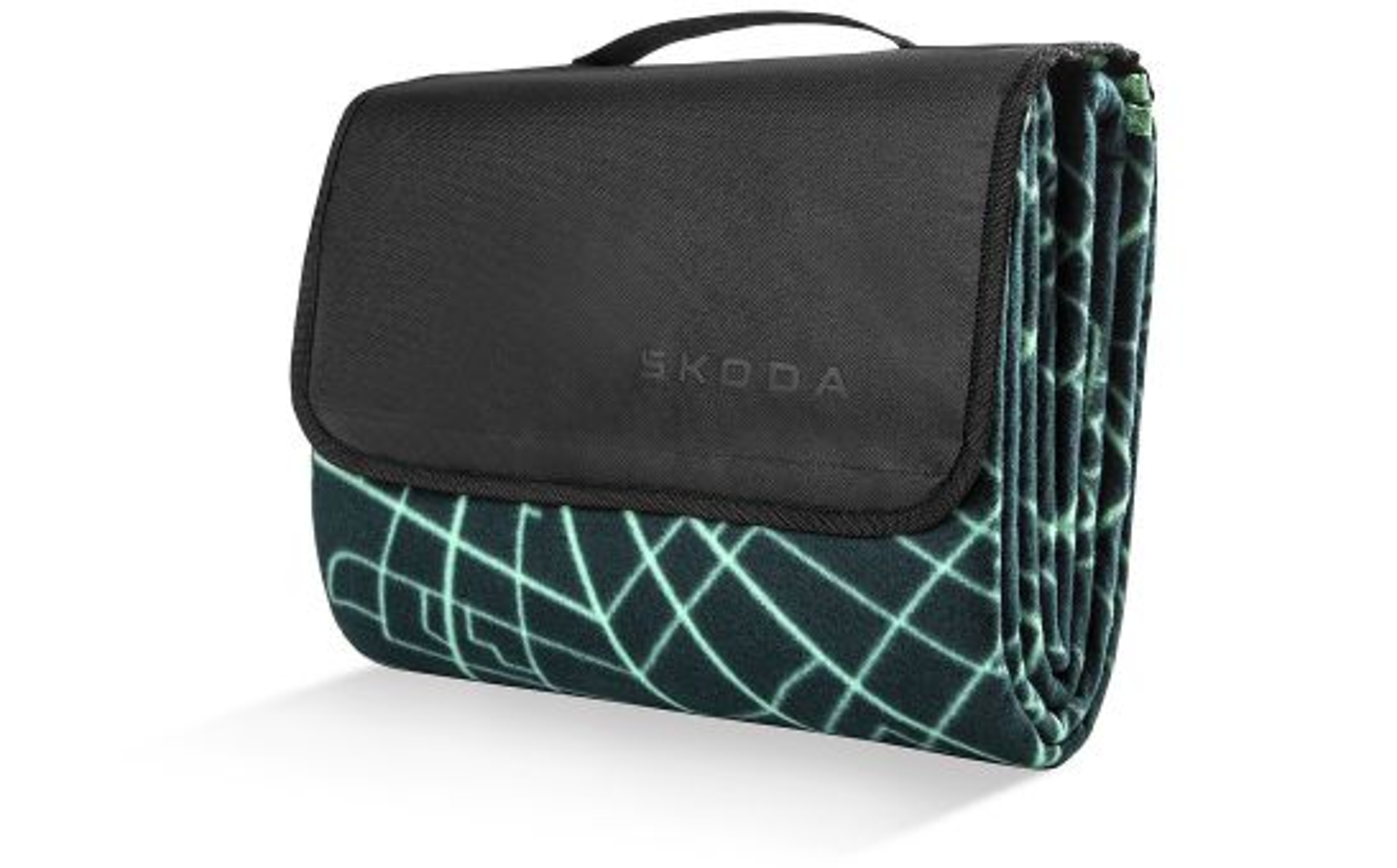 Couverture de pique-nique pratique en polaire peignée, arborant un nouveau motif Škoda et dotée d'un rabat noir. La couverture est dotée d'une couche imperméable sur sa face inférieure qui assure une isolation thermique. Elle se plie facilement et se maintient ainsi grâce à une bande Velcro. Logo Škoda minimaliste ton sur ton sur le rabat noir. Dimensions : 140 x 211 cm dépliée, 36 x 28 x 12 cm pliée.