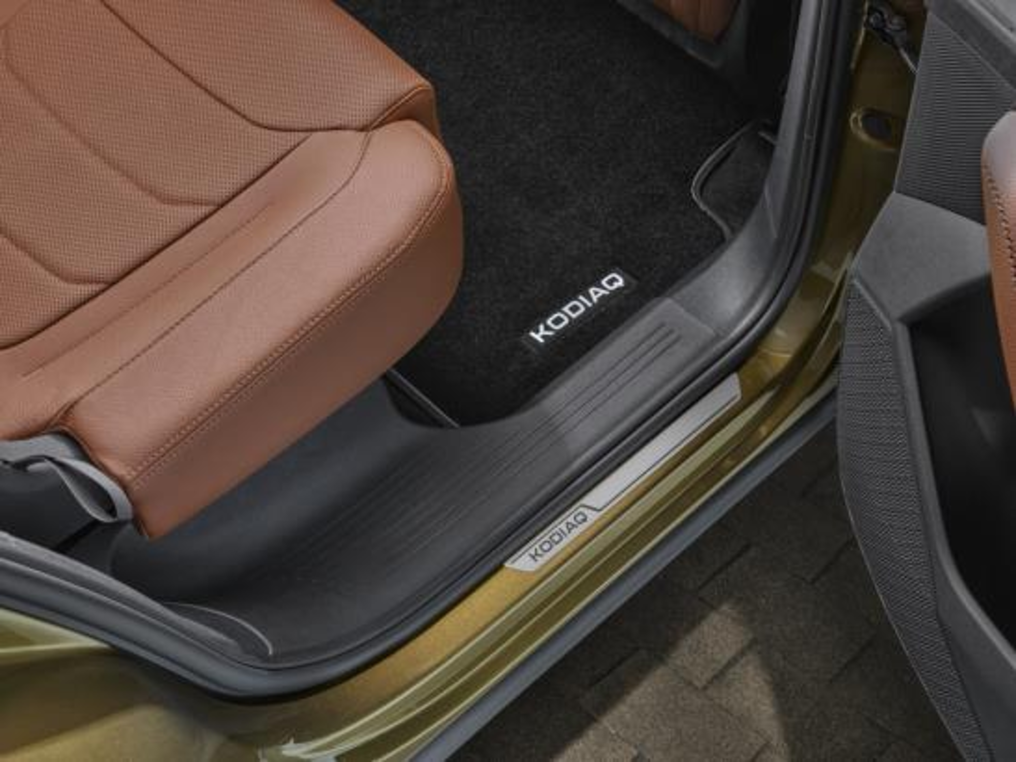 Decoratieve instaplijsten zijn niet alleen een praktische oplossing voor het beschermen van de instaplijsten , maar geven de auto ook een verfijndere uitstraling. Ze beschermen de carrosserielak in de buurt van de dorpels van de voorportieren tegen vuil. Instaplijsten zullen elke bestuurder imponeren met hun aantrekkelijke design. De strips volgen perfect de vorm van de dorpels . Zelfklevende tapes aan de onderzijde van de instaplijsten zorgen ervoor dat de verlijmde strips op de plek blijven waar ze horen te zitten. De dorpellijsten zijn versierd met KODIAQ-opschriften. Indien nodig kunnen ze eenvoudig worden gereinigd met een vochtige spons. Hun uiterlijk wordt nieuw leven ingeblazen en ze zien er weer als nieuw uit.